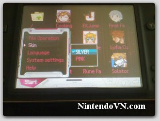 Tiếp đến là Skin, bạn có thể thay đổi tùy chọn skin giữa Silver Và Pink, nhưng nhược điểm lớn của super card team khi phát triển DSTwo là trong menu tùy chọn thay đổi skin rất hạn chế, hạn chế này từ dòng Flash Cart DSOnei đã có, nhưng DSonei được tùy chọn thay đổi 4 kiểu giao điện, không hiểu sao qua DSTwo chỉ còn 2 kiểu( ý kiến riêng của mình là có thể do Super Team tập trung đầu tư vào sức mạnh của DSTwo chứ không phải thay đổi giao diện nhiều kiểu). Bạn không thể tạo folder cài skin mới mà phải Copy skin mới đè lên skin cũ nằm trong folder có sẵn trong OS. Đây có lẽ là một điểm trừ cho DSTwo vì không cho phép cài đặt nhiều skin như Acekard2i.