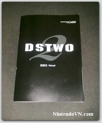 Trước tiên đập vào mắt mình là màu của chiếc hộp là màu đen, và cả Flash Cart cũng vậy, nhìn rất hiện đại (Do Super Team thường làm màu sắc của các Flash Cart mới khác với Flash Cart trước, như Flash Cart trước là DSOne/DSOnei có màu trắng). Bên trong Box có một cái khay để Flash Cart DSTwo và đầu thẻ nhớ MicroSD, và còn có một quyển sách hướng dẫn bạn cách sử dụng DSTwo bằng 2 ngôn ngữ là English và Chinese.