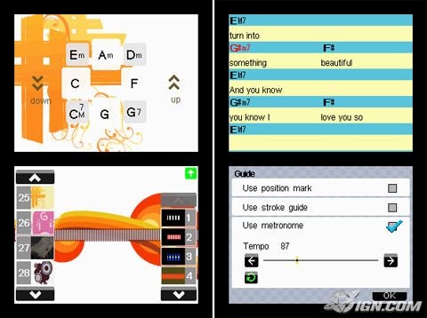 Bạn đã từng nghe hay chứng kiến những chàng trai lãng tử bên cạnh cây đàn guitar , tiếng hát cũng tiếng nhạc réo rắt muôn nơi làm bao trái tim say đắm ? Bạn muốn ao ước được 1 lần thử , được cảm giác thăng hoa trong âm nhạc :myemo0123: . Vậy hãy thử Jam ngay , một game giả lập guitar vô cùng hay được thiết kế cho ds . Có vô số bài hát được đặt sẵn hợp âm để bạn tập hát , thêm vào đó những bài học về nhịp phách v...v. Và khi bạn đã quen với game , hãy tự tìm một bài hát bạn thích , lựa chọn hợp âm từ các trang guitar , ... cắm loa vào ... và :em34: