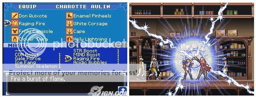 + Với Charlotte, ngoài vũ khí chính là 1 quyển sách (tome) dùng để đánh cận chiến, thứ vũ khí lợi hại nhất đó là phép thuật (magic). Ta có thể mua, thu thập trong quá trình chơi, lấy từ kẻ thù... Sử dụng phép thuật, nhiều cái yêu cần phải tốn 1 ít thời gian để thực hiện, nhưng hiệu quả cũng như sự lợi hại thì không chê vào đâu được! Ai từng sử dụng Maria Renard thì chắc hẳn sẽ biết điều này.