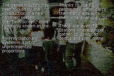 Một thế hệ máy chơi game cầm tay mới ra đời với tên gọi Nintendo DS, ...., ờ không nó là "Twin Screen" sử dụng tới 2 màn hình hiển thị, một đột phá mới trong làng game. Không ai biết người sản xuất là ai, chỉ biết một điều là người chơi sẽ chết trong vòng một tuần sau khi chơi. Bạn cũng chính là nạn nhân của trò chơi này khi bạn đang cầm trên tay chính cái thiết bị 2 màn hình đó.