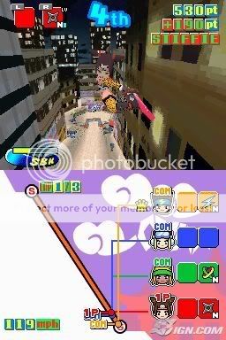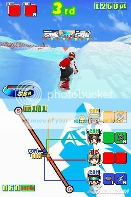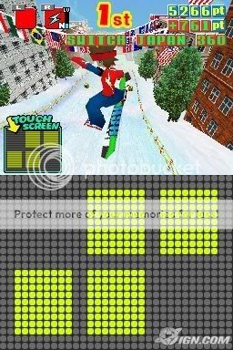 Nói nãy giờ mà chưa thấy đả động gì đến khả năng đặc biệt của DS (màn hình cảm ứng), đừng nói là Snowboard Kids chỉ đơn thuần chơi bằng phím nha. Đừng lo, đừng lo gì cả! Mặc dù Snowboard Kids chơi chủ yếu bằng phím thiệt, nhưng vẫn lồng vào đó vài trường hợp dùng stylus (dùng ngón tay thì tiện hơn). Ví dụ nhé! Khi bạn búng người lên không, màn hình cảm ứng sẽ xuất hiện những ô chữ nhật có đánh số, bạn sẽ phải nhấn những ô đó theo thứ tự để nhân vật của mình thực hiện một cú xoay đẹp mắt. Có nhiều kiểu xoay khác nhau cũng như nhiều dạng yêu cầu nhấn và chạm khác nhau.