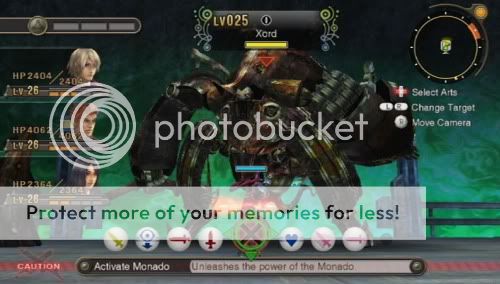 - Battle System : Là trái tim của game, Xenoblade có hệ thống chiến đấu theo kiểu thời gian thực, các nhân vật trong nhóm sẽ tự động tấn công nếu đến gần kẻ thủ, khá giống với hệ thống chiến đấu trong game Final Fantasy XII, nhưng trong Xenoblade được thực hiện tốt hơn, và AI của nhân vật trong nhóm rất tốt, tuy vẫn còn vài lỗi nhỏ. Với hệ thống chiến đấu này bạn sẽ không phải chờ mỗi khi ra lệnh trong các lượt đi như trước nữa, bạn sẽ có thể tự do di chuyển nhân vật trong trận đánh, sự dụng menu bên dưới để chọn dòng lệnh tấn công thích hợp, trong khi các nhân vật còn lại trong nhóm sẽ tự động tấn công. Bạn cũng có thể vòng ra đằng sau kẻ thù và tấn công chúng. Bắt đầu trận đánh bạn sử dụng phím Z để chọn mục tiêu (nhiều quái vật cấp cao có thể sẽ khiến bạn gặp khó khăn nếu bạn xâm nhập quá sâu vào lãnh thổ của chúng, tuy nhiên sau này nhân vật của bạn đủ mạnh, bạn hãy quay lại và dạy chúng biết ai là boss). Khi nhân vật đứng đủ gần thì sẽ tự động tấn công. Nhưng đó không phải là tất cả, mỗi nhân vật điều có năng lực khác nhau được gọi là “Arts”, bạn có thể liên kết các đòn tấn công lại giữa ba nhân vật để tạo ra những đòn cực mạnh, có những kẻ thù đòi hỏi bạn phải sử dụng một vài đòn tấn công đặc biệt để tiêu diệt chúng. Đây là năng lực đặc biệt giúp bạn gây ra sát thương lớn lên kẻ thù nhưng vẫn tùy thuộc vào việc bạn có đứng gần kẻ thù hay không. Với nước đi hợp lý thì dù kẻ thù mạnh bạn vẫn có thể hạ gục chúng dễ dàng.