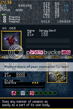 Về độ khó: đây là 1 vấn đề đáng lưu tâm. Độ khó nói chung của game ở mức bình thường, không có gì đáng chú ý. Đối với trùm, nếu đánh không cẩn thận thì sẽ thua rất nhanh chóng, tuy nhiên, nếu chịu khó chú ý quan sát để bắt bài thì có thể hạ trùm 1 cách dễ dàng mà không tốn 1 giọt máu nào (trường hợp toàn thắng như vậy sẽ được thưởng 1 medal, nhưng chả hiểu để làm gì, chắc trưng cho đẹp). Trong game có 1 địa điểm rất thử thách là Large Cavern. Quái vật ở đây rất nhiều và cực mạnh, trúng 2-3 đòn là tiêu, hơn nữa phải đi 1 lèo từ đầu đến cuối, không có Save Point để hồi phục HP hay MP. Do đó, trước khi vào đây, nhân vật phải có Level cao (45 trở lên) và phải mua thật nhiều đồ ăn thì mới có cơ hội sống sót.