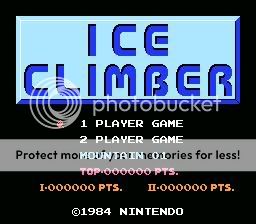 _ Ice climber có thể nói là một game classic kinh điển do chính nintendo phát triển,phát hành vào năm 1985. Bạn sẽ vào vai 2 nhân vật người Eskimo là Popo và Nana giống nhau y hệt, chỉ khác nhau là Popo mặc áo xanh còn Nana mặc áo hồng. Bạn sẽ chọn Popo nếu chơi 1 người, còn nếu có người chơi thứ hai thì Nana sẽ được chọn. Game có cách chơi rất đơn giản với một mục đích duy nhất: leo lên đến đỉnh. Thế nhưng điều đó lại ko đơn giản tí nào vì rất nhiều "kẻ thù" đang chờ bạn ở phía trước ...