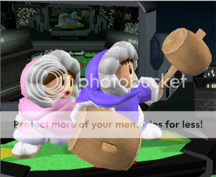 _ Vào vai nhân vật chính Popo hoặc Nana, bạn sẽ được trang bị "vũ khí" đó là ... một cái búa bằng gỗ. Bạn chỉ có hai việc để làm : đập và nhảy, với mục đích cuối cùng : leo đến đỉnh. Nghe có vẻ đơn giản phải không ? Không hề ^_^. Trước hết, là ở mỗi vòng đều có giới hạn thời gian, khoảng 40 giây. Môi màn chơi sẽ chia làm 2 phần, phần đầu tiên gồm những lớp băng đầy màu sắc mà bạn có thể phá được để leo đến đỉnh.