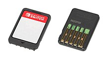 Thẻ game vào thời điểm phát hành của Switch có dung lượng 32GB; Nintendo đã có kế hoạch giới thiệu thẻ game 64GB vào nửa cuối năm 2018, nhưng phải đẩy lùi lại cho đến năm 2019. Một số trò chơi vật lý vẫn có thể yêu cầu nội dung được cài đặt vào bộ nhớ trong, với một số trò chơi sử dụng một phần đáng kể bộ nhớ trong thẻ microSD không khả dụng. Các trò chơi vật lý khác có số lượng lớn nội dung có thể yêu cầu thẻ microSD có mặt trong Switch, chẳng hạn như NBA 2K18; các trò chơi như vậy được đánh dấu rõ ràng trên trang bìa để hiển thị các yêu cầu này