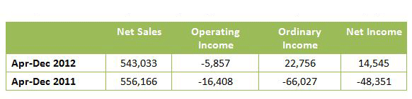 Báo cáo Tài chính của Nintendo lập vào khoảng thời gian tháng cuối cùng của năm 2012, cho thấy rằng: Tình hình Tài chính của Nintendo đã hồi phục, sau khi giữ ở mức thấp trong 9 tháng liên tục đầu năm 2012.
