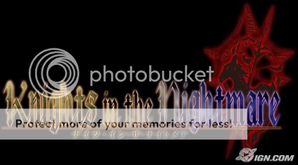 Có lẽ vài ngày nay fan DS sắp bội thực với số game chất lượng được công bố , nhưng đừng lo danh sách sắp tới vẫn còn dài . Được biết đến như phần mới nhất của seri Department of Heaven của Sting , Knights in the Nightmare được biết đến như phần tiếp theo của Yggdra Union , với cách chơi được cải tiến 1 cách sáng tạo nhất để thỏa lòng fan hâm mộ khi chuyển sang nhà mới từ GBA lên DS . Được biết thiết kế mỹ thuật và nhân vật sẽ do Satoko Kiyuzuki tiếp tục đả nhiệm , phần âm nhạc sẽ đẩy lên mức cao nhất sao vốn đã rất hoàng tráng khi ở GBA với hơn 60 audio track . Tin đồn là game sẽ phát hành vào tháng 4 ,hy vọng là vậy để sớm có game chơi !