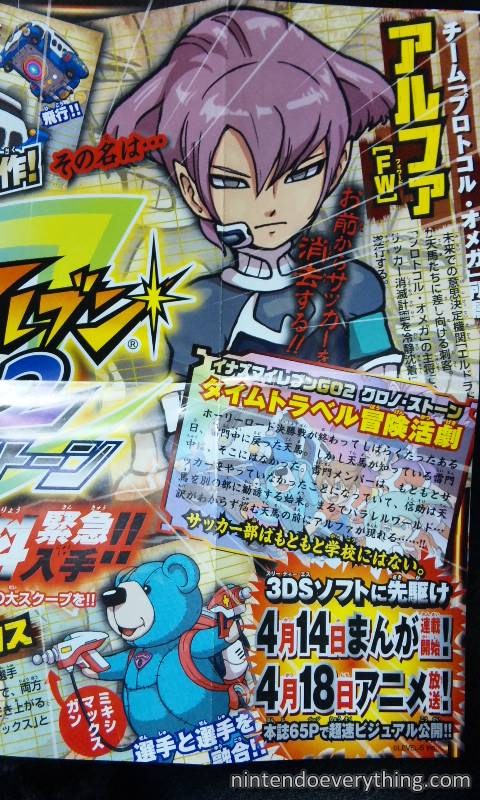 Ngoài game, Inazuma Eleven Go Chrono Stone cũng sẽ có manga in trên Coro Coro từ 14/4 và anime mới phát sóng từ 18/4.