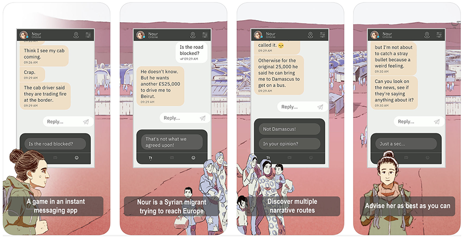 Bury Me, My Love là một game tiểu thuyết tương tác được thiết kế cho các thiết bị cầm tay. Lấy cảm hứng từ các sự kiện có thật và thấm nhuần chủ đề về tình yêu, hy vọng và di cư. Bury Me, My Love kể câu chuyện về những người tị nạn, Syria Nour và chồng Majd, khi Nour thực hiện một hành trình đầy nguy hiểm đến nơi an toàn. Bằng cách đọc tin nhắn và chọn tùy chọn trả lời, người chơi sẽ giúp Nour vượt qua những khó khăn mà cô sẽ gặp phải, cốt truyện có rất nhiều kiểu kết thúc. Bury Me, My Love có thể được chơi trong thời gian thực, với các tin nhắn đến trong khoảng thời gian không liên tục, đôi khi kéo dài hàng giờ.