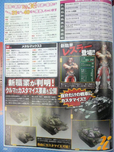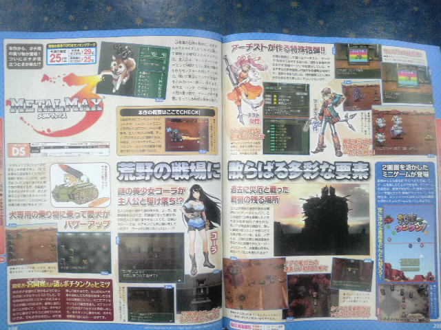 [imgalign=left]http://www.famitsu.com/image/6967/pyGmaQRDLl9zP6T5zi1U6t1Zit8BtJzW.jpg[/imgalign]Metal Max 3 đã được chính thức đưa lên DS. Đây là bản tiếp theo của dòng Metal Saga từng được Atlus phát hành. Game sẽ được phát hành tiếng Nhật mùa hè này và vẫn chưa có thông tin về bản tiếng Anh.[imgalign=right]http://www.famitsu.com/image/6967/seRwR66aVf6hWXOl1eD7GbZ6LZ393DGb.jpg[/imgalign]