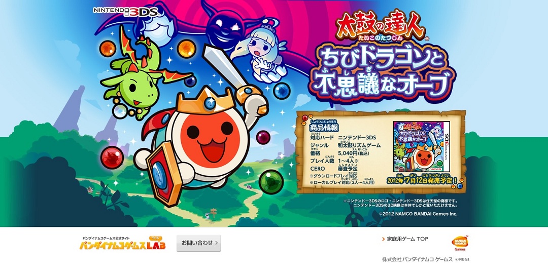 Namco Bandai vừa chính thức ra mắt trang teaser giới thiệu một tựa game đánh trống mới: Taiko no Tatsujin: Chibi Dragon to Fushigi na Orb (Tạm dịch là "Little Dragon and the Mysterious Orb") Với fan thể loại Rhythm đa số đều yêu thích những hình ảnh dễ thương trong series Taiko này thì đây thật là một tin vui. Game dự kiến sẽ phát hành trên 3DS vào 12/7 với giá ¥5040.