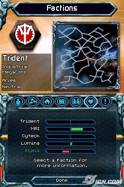 - Trident: Tập đoàn Trident cung cấp các con tàu và động cơ cần thiết để di chuyển các cổng LeapGate trong không gian, họ là nhóm đầu tiên phát triển những con tàu có thể di chuyển nhanh hơn vận tốc ánh sáng. Họ thiết kế rất nhiều mẫu mã tàu và phần lớn là tàu quân sự. Những con tàu của Trident lớn nhất trong thiên hà và tất cả ba tập đoàn còn lại đều sợ Trident sẽ trở nên quá lớn mạnh.