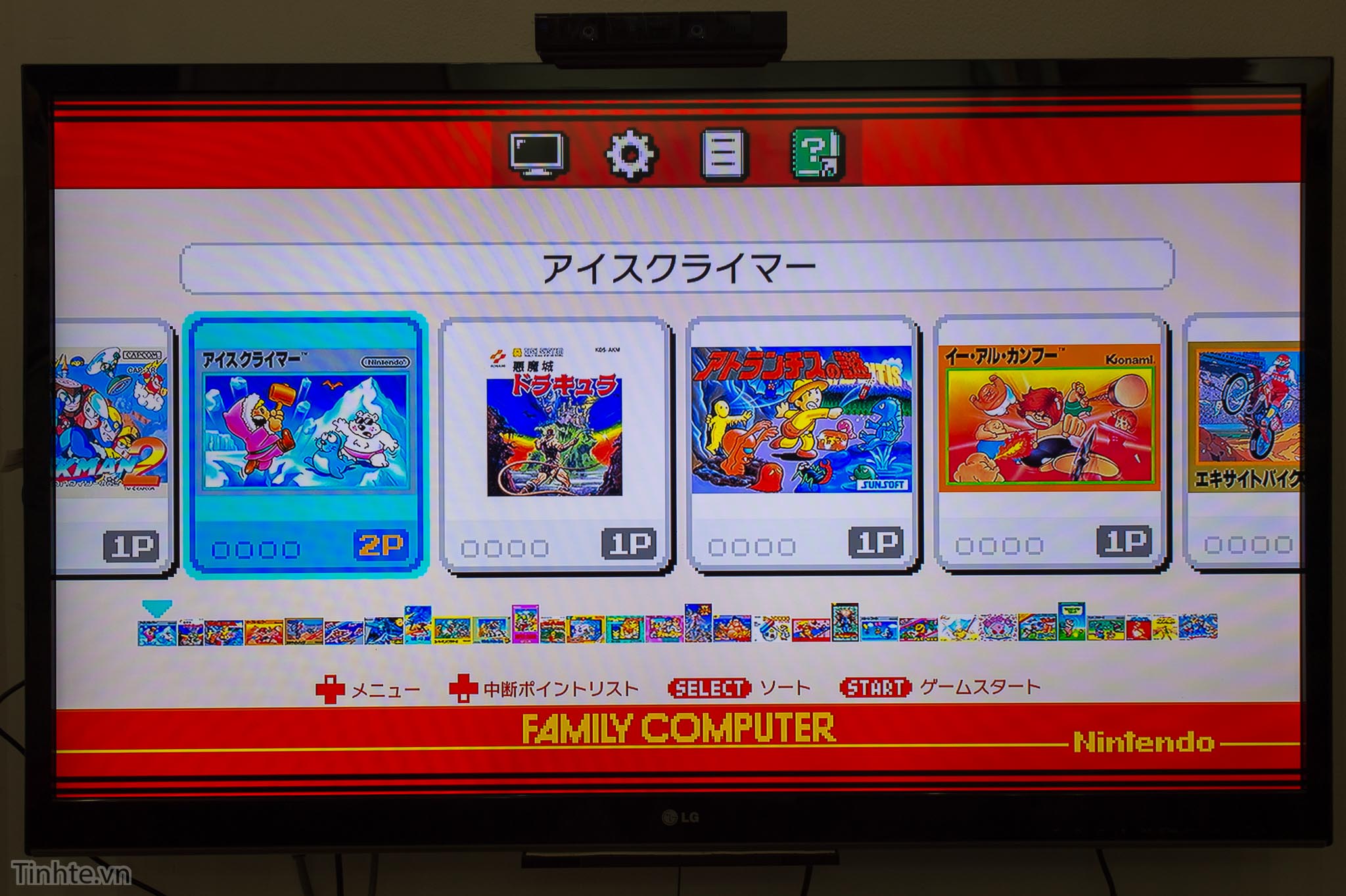 Màn hình chọn game khi mở máy lên. Không còn những dòng chữ đánh số chán ngắt như hồi xưa nữa mà bây giờ là những biểu tượng game xếp theo hàng ngang. Giao diện máy tiếng Nhật nhưng kỳ thực không sao cả bởi hồi xưa tiếng Anh cũng như tiếng Nhật và chúng ta vẫn cứ chơi đó thôi!