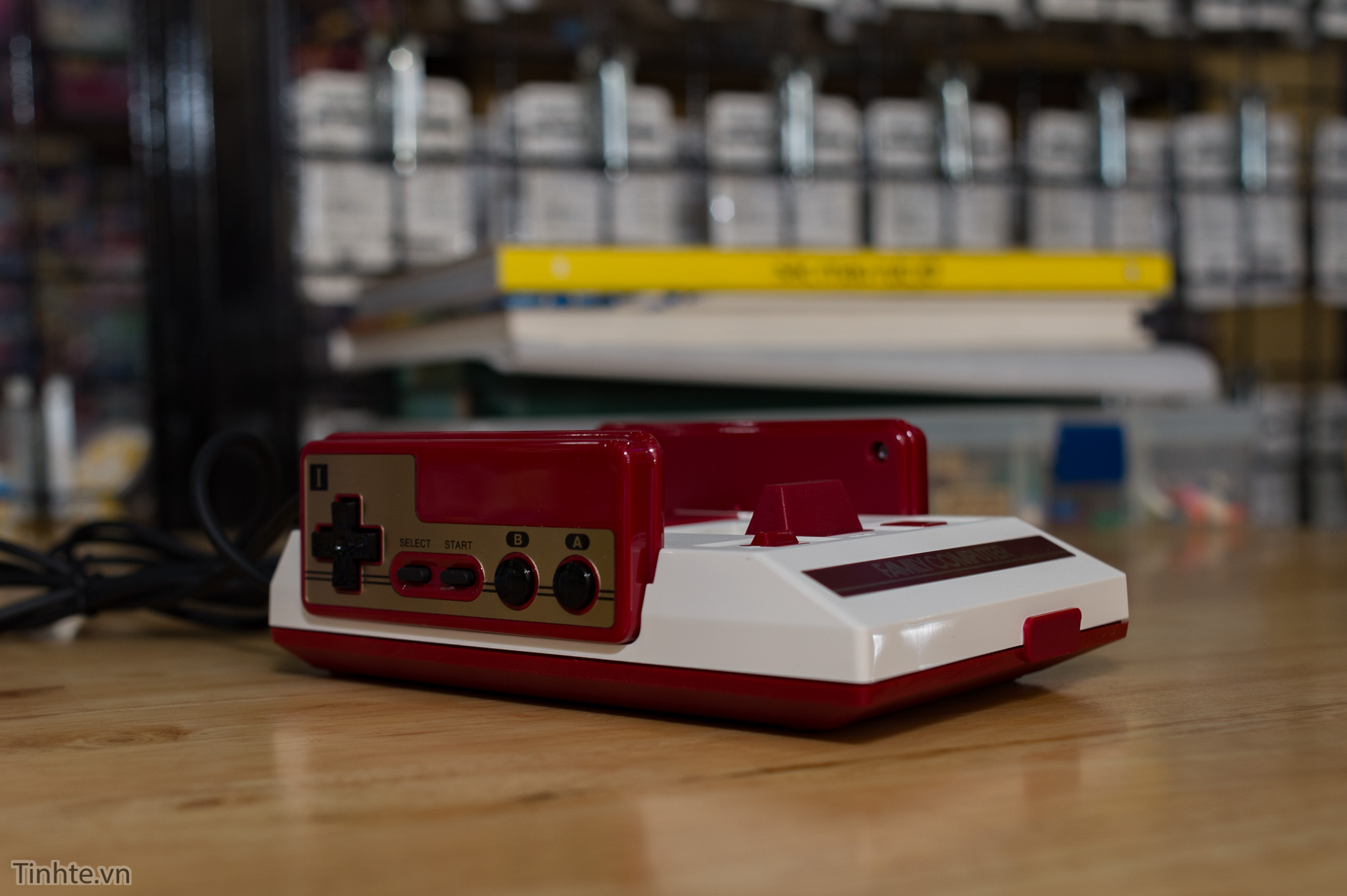 Đây là Family Computer. Quá giống phiên bản cỡ lớn hồi xưa với 2 tông màu trắng và đỏ huyết dụ. Chúng ta cũng có khe cắm băng và lẫy đẩy băng ra, tất nhiên là chỉ mang mục đích trang trí chứ không sử dụng hoặc tháo ra được.