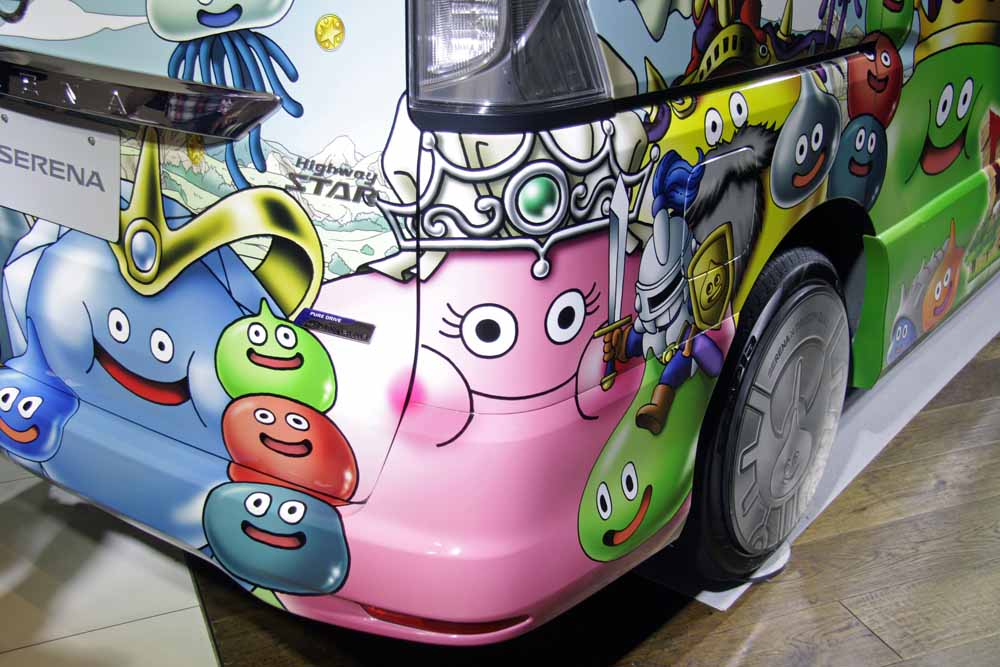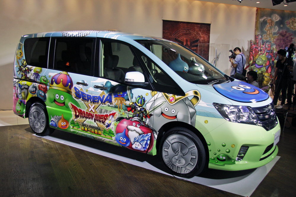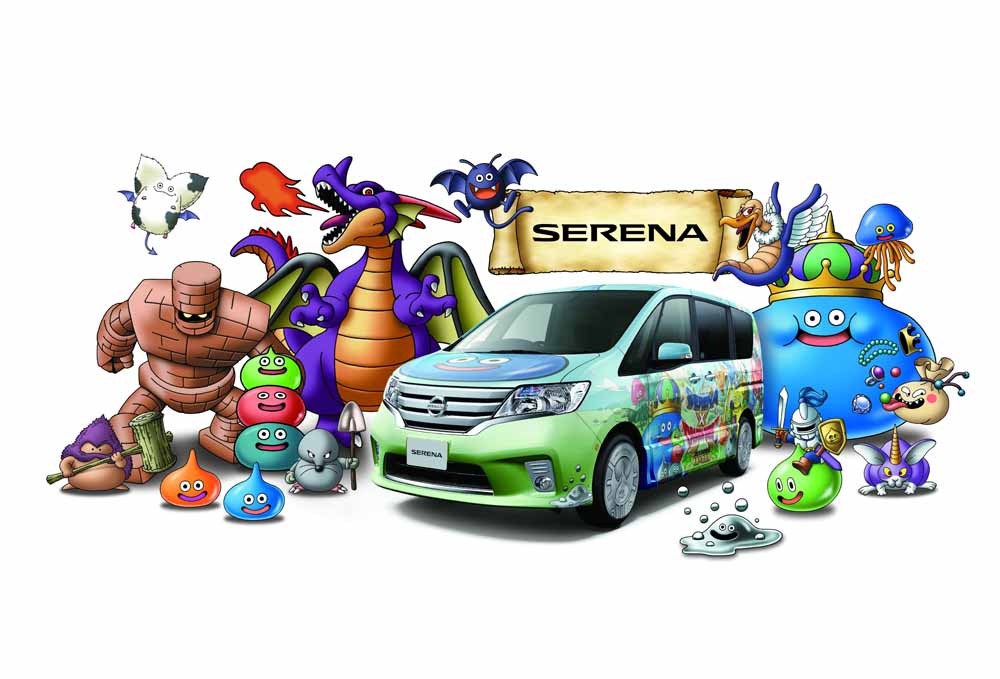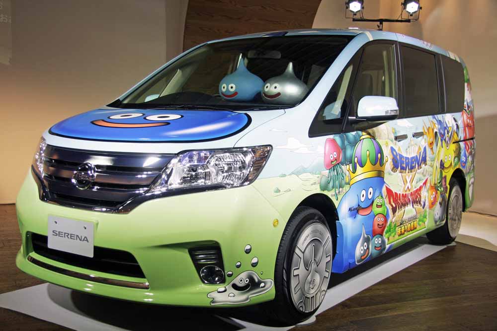Nissan và Square Enix đã kết hợp với nhau để đưa ra mẫu xe đặc biệt với chủ đề Dragon Quest. Dòng xe gia đình Serena S-Hybrid của Nissan đã được phủ lên một lớp áo mới với những chú Slime hết sức sinh động.